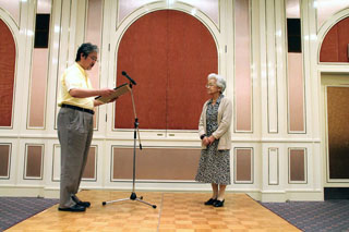 浦山先生のご遺族であられる浦山真紀子様お迎えして、お世話になった故浦山弘三先生の謝恩会をじっしする。謝恩の意味を込めて、感謝状を奥様に贈る。