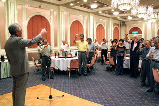 そろそろ宴も盛りとなり、やはり得意の喉の披露となった。 男声合唱の重厚なハーモニーが会場を震わせる。
