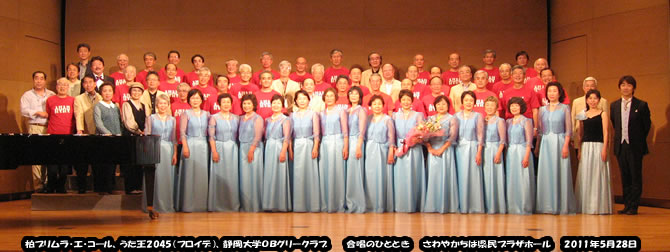 ■ 最後のステージは協賛して頂いた「うた王2045」の皆さんと合同で、「希望の島」を唄う。 指揮は名取さん。