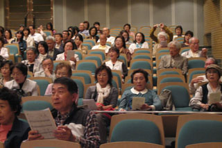 今回の東日本大震災の被災地の方々を思って、会場の皆様と「ふるさと」を合唱する。 指揮は柳澤さん。